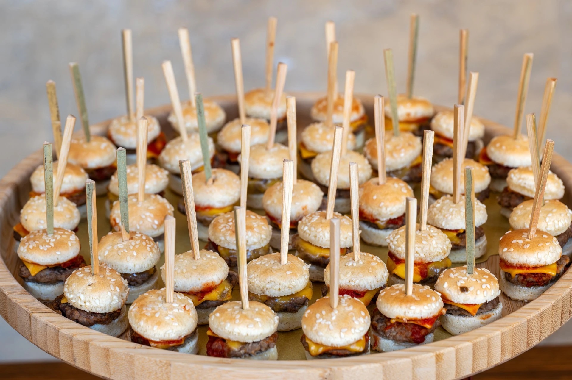 Onze receptiehapjes: mini-hamburgers, mini-croques, mini-hotdogs, mini-bagels en mini-panni's